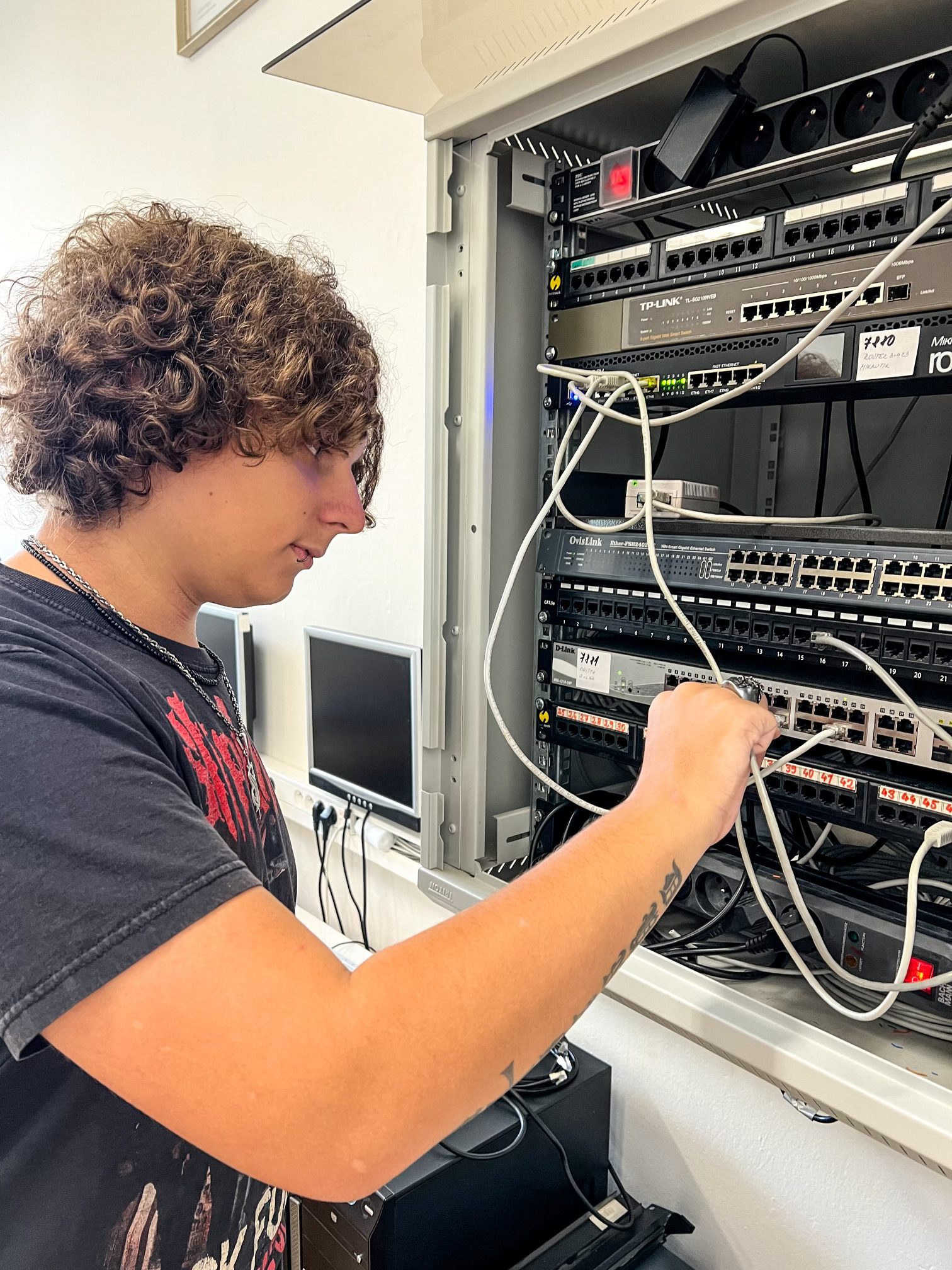 V naší IT laboratoři se naučíš pracovat s kabeláží, sítěmi, nakonfigurovat prvky jako router nebo NAS. Sestavíš a opravíš počítač nebo si vyzkoušíš VR brýle.